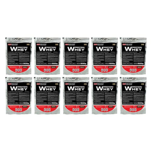 Kit 10X Whey Protein 500G Chocolate - Bodybuilders Complete a sua suplementação diária com o Kit 10x Whey Protein 500g - BodybuildersWhey Protein Concentrado em Blend - Este Blend com Whey Protein é um suplemento em pó balanceado, desenvolvido especialmente para atletas e praticantes de atividades físicas. Com a combinação da proteína concentrada do soro do leite, popularmente conhecido como Whey Protein, proteína isolada da soja, maltodextrina e soro do leite, este suplemento é um excelente aliado para aquelas pessoas que buscam uma alimentação rica em aminoácidos essenciais de rápida absorção, ganho de massa muscular magra, força muscular, mais energia durante os treinos e a saúde geral do organismo. Sem contar o ótimo custo benefício. Com preparo rápido, fácil, prático e 3 deliciosas opções de sabores: Chocolate, Baunilha, Morango. Em uma embalagem econômica, este Whey Protein Concentrado em Blend Proteico se tornará um grande aliado no seu dia a dia.