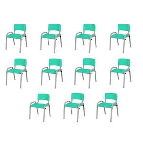 Kit 11 Cadeiras Infantil Iso, Escola, Base Cinza-verde água
