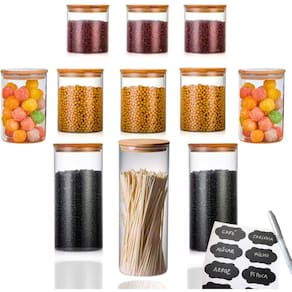 Organize e preserve seus alimentos com estilo usando este conjunto de 11 potes de vidro herméticos com tampas de bambu. Cada pote é feito de vidro de alta qualidade e tampa de bambu natural com vedação de silicone, garantindo que seus alimentos permaneçam frescos por mais tempo. Este conjunto é ideal para armazenar uma variedade de itens, desde grãos, massas e especiarias até café, chá e snacks.