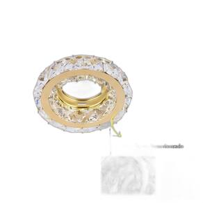 Kit 11 Spot Cristal Dourado K9 Inox Embutir Redondo Mr16 Lup62 Spot de Embutir Redondo com Pastilhas de Cristal K9 Transparente e Inox na cor dourado. Neste kit contém: - 11 unidades do spot - Importante: Tamanho 9,5 cm de diâmetro. Tamanho do recorte no teto de 6 a 7 cm de diâmetro. Produto para Embutir em Gesso, Madeira ou PVC . Não serve para Laje. Descrição: - Material: Cristal Transparente e Metal Dourado - Dimensões: 9,5 cm diâmetro x H 2,5 cm altura - Tamanho do recorte no teto: 6 a 7 cm - Quantidade de Lâmpadas: 1 MR16 - Soquete: GU10 incluso - Potência Máxima: 50W - Tensão: Bivolt - : 1 ano - Compatibilidade: LED - MR16 - Dicróica Lâmpadas não inclusas. Marca: Não Informado