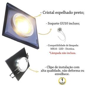 Descrição do spot: - Material: Cristal espelhado preto e alumínio Dimensões: Comprimento: 9 cm Largura: 9 cm Altura: 0,8 cm Recorte no teto : 6,5 cm