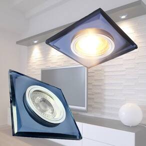 Descrição do spot: - Material: Cristal espelhado preto e alumínio Dimensões: Comprimento: 9 cm Largura: 9 cm Altura: 0,8 cm Recorte no teto : 6,5 cm