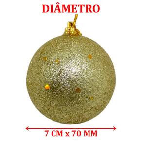 Kit 12 Bolas Para Árvore De Natal Com Glitter Dourado 70mm;