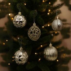 Um conjunto refinado que une brilho, delicadeza e sofisticação, ideal para transformar sua decoração natalina em um cenário inesquecível.