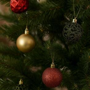Kit com 12 Bolas de Natal Mistas – Texturas Variadas | 6cm | Embalagem Formato de Pinheiro