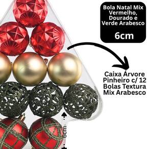 Kit 12 Bolas Natal Texturas Arabesco Luxo 6cm Caixa Pinheiro