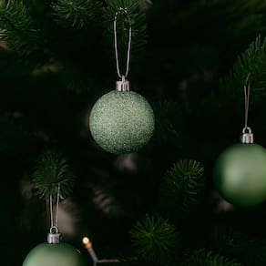 As bolas possuem 6cm de diâmetro, tamanho ideal para decorar árvores de diversos portes, guirlandas, arranjos ou outros elementos natalinos. O design moderno e o acabamento em tons de verde garantem harmonia com outras cores tradicionais do Natal, como dourado, vermelho ou branco.