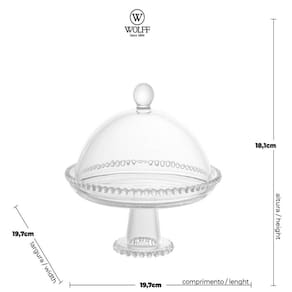Kit 12 Boleiras Prato para Queijo 19,5cm Cristal com Pé e Tampa Incolor Mesa Posta