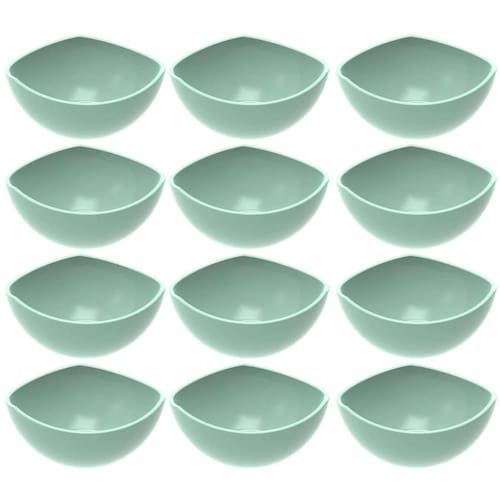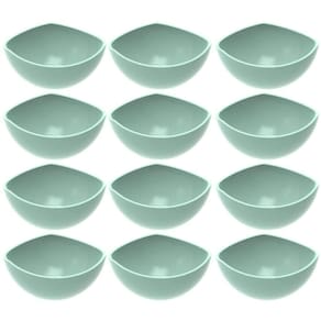 Garantia: 90 dias / Peso de cada: 74g / Cor predominante: verde menta / Referência: 7798140665892; Dimensões de cada: 14,5cm (D) x 16cm (A); Capacidade: 500ml; Conteúdo: 12 bowls grande; Material: polipropileno.