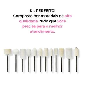 Características Principais: - 12 Brocas de feltro; - 12 Formatos diferentes; - Perfeitas para polir e dar brilho; - Utilizada em técnicas como unha de gel, unha acrílica e alongamentos em geral; - Diversos formatos para todos os detalhes e formatos de unhas; - Toque suave.
