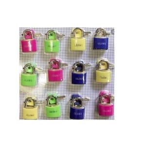 12 Peças Cadeado Pequeno 25mm Cartela Cadeado Glory - colorido Cartela com 12 cadeados sendo:25mm Cada cadeado acompanha 2 chaves Leia abaixo ref. As chaves MATERIAL: AÇOORIGEM: importado Cadeado Marca: GLORY Temos preços especiais para Atacadistas e Revendedores. O preço se refere a 1 cartela com 12 cadeados. Atenção o produto é importado. Lacrado na cartela com 12 peças.Ao comprar, fique ciente disso, ok Como informamos: Marca: Glory