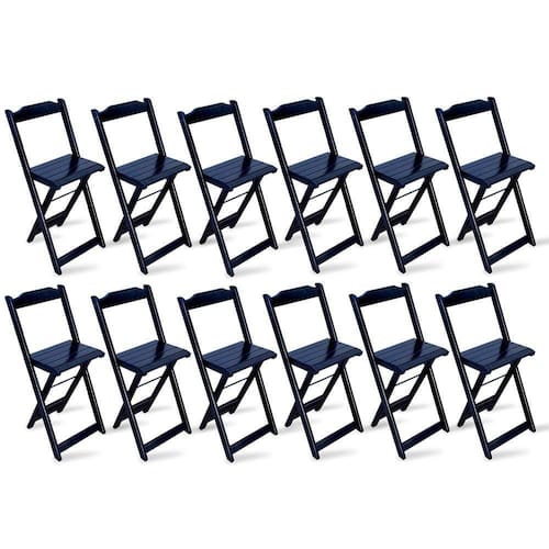 Kit 12 Cadeiras Bistrô Dobrável Madeira Preta - Tarimatãé ideal para bares, restaurantes, estabelecimentos, áreas de lazer e tambem para sua casa. Em madeira maciça, tornando-os resistentes e duráveis. Seu design permite que esse conjunto seja encaixado em qualquer ambiente, trazendo um toque a mais para seu estabelecimento. Além de sua durabilidade, o que lhe trará conforto para servir seus clientes. Por ser dobrável torna-se mais fácil guardar, manusear e limpar o produto.Atenção: EVITE USAR PRODUTOS ABRASIVOS E QUÍMICOS PARA LIMPEZA DO PRODUTO, aconselha-se o uso de pano umedecido para melhor conservação mantenha o produto fora de chuva e sol constantes.*imagens meramente ilustrativas*Kit 12 Cadeiras Bistrà DobrÃvel Madeira Preta - TarimatÃ