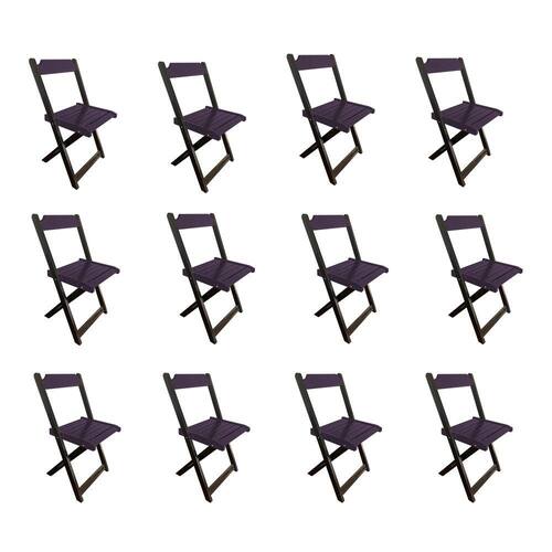 Tipo: Cadeira Modelo: dobrável Base: Madeira maciça Cor do assento: Roxo Quantidade de cadeiras: 12