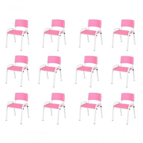 Kit 12 Cadeiras Infantil Iso Base Branca Rosa