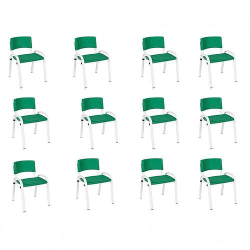 Kit 12 Cadeiras Infantil Iso Base Branca Verde Escuro - Branco