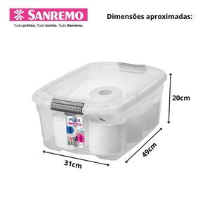 Kit 12 Caixas Organizadora Multiuso 20 litros Sanremo Kit 12 Caixas Organizadora Multiuso 20 litros Sanremo A Caixa Organizadora Multiuso 20 litros Sanremo é a solução perfeita para quem busca praticidade e eficiência na organização dos espaços. Com um design moderno e funcional, esta caixa organizadora é ideal para armazenar uma variedade de itens, mantendo tudo em ordem e facilmente acessível. Características Principais: Capacidade Generosa: Com uma capacidade de 20 litros, a caixa oferece amplo espaço para armazenar diversos tipos de objetos, desde mantimentos e material de limpeza e higiene, a brinquedos pequenos e até ferramentas e materiais de escritório. Material Durável: Fabricada em polipropileno de alta qualidade, a caixa é resistente e durável, suportando o uso diário e protegendo os itens armazenados. Transparência Prática: A caixa possui um corpo transparente, permitindo visualizar o conteúdo sem a necessidade de abrir a tampa, facilitando a identificação rápida dos itens. Tampa Segura: A tampa possui um encaixe perfeito e firme, garantindo que os itens fiquem protegidos contra poeira e umidade. Design Empilhável: Projetada para ser empilhável, a caixa permite otimizar o espaço de armazenamento, mantendo tudo organizado e economizando espaço. Alças Integradas: As alças laterais facilitam o transporte, mesmo quando a caixa está cheia, garantindo praticidade no manuseio. Benefícios Adicionais: Versatilidade de Uso: Ideal para uso em casa, no escritório, em garagens ou áreas de serviço, a caixa organizadora é versátil e atende a diversas necessidades de organização. Fácil de Limpar: O material de polipropileno é fácil de limpar, permitindo que a caixa mantenha sua aparência nova e higiênica por mais tempo. Estilo Moderno: Com um design clean e moderno, a caixa se integra bem em qualquer ambiente, seja ele residencial ou comercial. Ideal Para: Organização Residencial: Perfeita para organizar brinquedos, utensílios domésticos e muito mais. Uso em Escritórios: Ideal para armazenar materiais de escritório, documentos e outros suprimentos, mantendo o ambiente de trabalho ordenado. Armazenamento em Garagens e Oficinas: Excelente para guardar ferramentas, equipamentos e peças, facilitando o acesso e a organização. Especificações Técnicas: Dimensões da unidade: 49cm de largura x 20cm de altura x 31cm de profundidade Peso: 600g Capacidade: 20 litros Material: polipropileno de alta qualidade Cor: transparente : 30 dias A Caixa Organizadora Multiuso 20 litros Sanremo é a escolha ideal para quem busca organizar o espaço de forma prática e eficiente. Com sua capacidade generosa, durabilidade e design funcional, ela facilita a vida cotidiana, mantendo tudo em ordem e ao seu alcance. Invista na organização e na qualidade e transforme o seu espaço em um ambiente mais prático e organizado. Conteúdo da Embalagem: 12 Caixas Organizadora Multiuso 20 litros A caixa pode ser Utilizado em ambientes externos A caixa é ideal para uso em ambientes internos. Se for utilizada em ambientes externos, recomenda-se protegê-la de exposição direta ao sol e à chuva para prolongar sua durabilidade. A caixa é empilhável sim, a caixa foi projetada para ser empilhável, permitindo otimizar o espaço de armazenamento e mantendo tudo organizado.