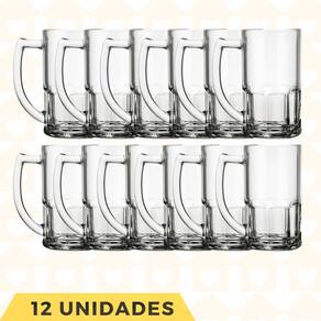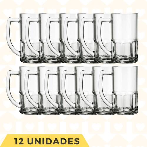 Kit 12 Canecas Vidro Vitamina 320ML Sucos Cerveja Chopp