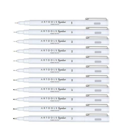 Caneta pigmentada de qualidade premium com tinta de intensa pigmentação preta; Tinta resistente à ação da luz e dágua, prolongando o tempo de vida do material artístico produzido com a caneta Pigmentum; Ponta japonesa resistente, que confere maior durabilidade ao produto; No contato com o papel, o traço se revela intenso e uniforme; Os 12 traços disponíveis (0.05mm, 0.1mm, 0.2mm, 0.3mm, 0.4mm, 0.5mm, 0.6mm, 0.7mm, 0.8mm, 1.0mm, 1.2mm e chanfrada) possibilitam alta variedade de espessuras.