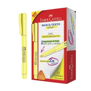 O Marca Texto Grifpen da Faber-Castell possui a ponta chanfrada, que possibilita traços finos e grossos a depender da posição que a ponta é colocada no papel. Seu formato triangular garante maior conforto ao escrever e as cores são superfluorescentes.