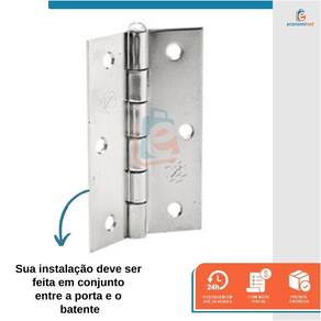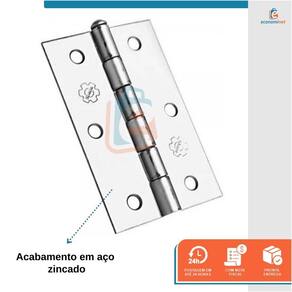 Características técnicas: Material: Aço zincado Medida da dobradiça (pol): 2" Uso indicado: Portas e janelas Quantidade: 12 unidades Marca: Silvana Ref.: 4037111