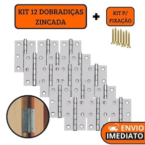 Kit 12 dobradiças zincada para porta de madeira 6,4cm Kit 12 dobradiças zincada para porta de madeira 6,4cm + parafusos para fixação