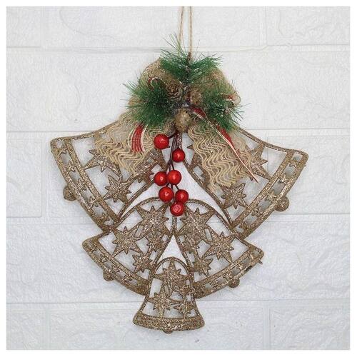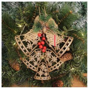 Kit 12 Enfeite Pendente Decoração Natalina Sino Vazado Dourado 25cm -
