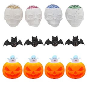 Transforme sua festa de haloween com estilo com nossas Abóboras, caveira e morcego Squishies de Decoração.