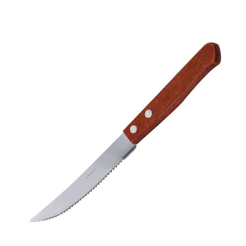 Material de alta qualidade: aço inoxidável que resiste à corrosão, fácil de limpar e mantém o brilho. Cabo de madeira com acabamento rústico: firmeza, conforto e segurança ao segurar. Rebites metálicos reforçados: estabilidade extra e confiabilidade no uso diário. Design versátil e atemporal: perfeita para refeições do dia a dia, churrascos, almoços em família e jantares especiais. Combina com mesas rústicas, modernas ou tradicionais, destacando praticidade e beleza. Conjunto: 12 facas de mesa com Cabo de Madeira; ideal para faqueiro completo, renovação de utensílios ou presentear.
