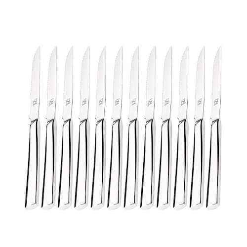 Composição: - 12 Facas de Mesa(De churrasco, ponta cortante): 23,2cm; tamanho lâmina 12,5 cm e espessura 8,5 mm Especificações: Marca: Hércules;Modelo: Mykonos 4000-040; Garantia: 3 meses;---- Aqui na Casa & Tendência você encontra os melhores utensílios domésticos e tudo que você precisa para sua cozinha ----