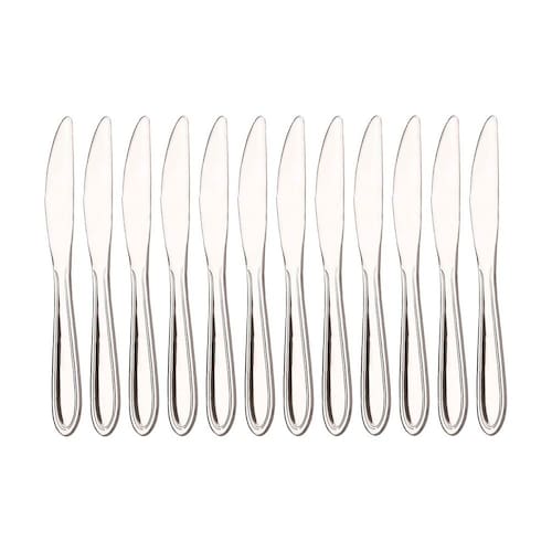 - 12 Facas de Sobremesa (Ponta arredondada) 18,6 cm; tamanho lâmina 9,5 cm e espessura 3 mm