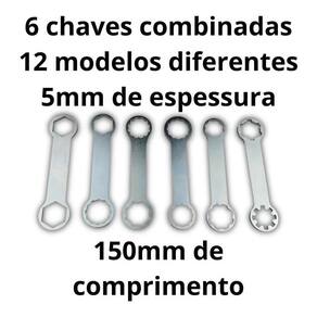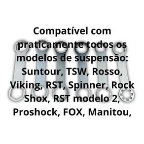 Kit com 6 chaves combinandas totalizando 12 modelos para suspensão de bike O mais completo do mercado Compatível com praticamente todos os modelos de suspensão: Suntour, tsw, rosso, viking, rst, spinner, rock shox, rst modelo 2, proshock, fox, manitou, Comprimento ideal para o manuseio de 150mm Espessura de 5mm, proporcionando uma ferramenta de maior resistência. Produto em aço com alta dureza e resistência, tratamento superficial eletrolítico que não permite que a ferramenta sofra oxidação. Produto cortado a laser garantindo o melhor ajuste e desempenho Excelente qualidade e durabilidade - qual o valor do - qual o prazo de entrega - tem Garantimos o produto num período de 12 meses contra defeitos de fabricação. Vale lembrar que a não cobre mau uso do produto. Marca: Não Informado