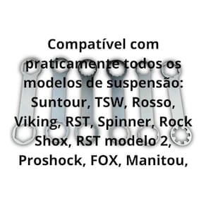 Kit com 6 chaves combinandas totalizando 12 modelos para suspensão de bike O mais completo do mercado Compatível com praticamente todos os modelos de suspensão: Suntour, tsw, rosso, viking, rst, spinner, rock shox, rst modelo 2, proshock, fox, manitou, Comprimento ideal para o manuseio de 150mm Espessura de 5mm, proporcionando uma ferramenta de maior resistência. Produto em aço com alta dureza e resistência, tratamento superficial eletrolítico que não permite que a ferramenta sofra oxidação. Produto cortado a laser garantindo o melhor ajuste e desempenho Excelente qualidade e durabilidade - qual o valor do - qual o prazo de entrega - tem Garantimos o produto num período de 12 meses contra defeitos de fabricação. Vale lembrar que a não cobre mau uso do produto. Marca: Não Informado