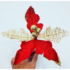 O cabo flexível e resistente permite uma integração harmoniosa em arranjos, guirlandas ou árvores, tornando-a versátil para qualquer cenário natalino. Esta flor não é apenas um adorno; ela é uma expressão de festividade e refinamento, garantindo que sua decoração capture o verdadeiro espírito e a elegância do Natal. Um toque de charme que promete ser o destaque em suas comemorações!