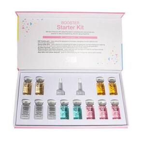 NO.1 Peptide Gold Ampoule: O produto no topo é rotulado como NO.1 Peptide Gold Ampoule. Contém ingredientes PDRN extraídos do sêmen do salmão, que têm efeitos regenerativos e anti-inflamatórios para a pele. Diferentes peptídeos melhoram as rugas e aumentam a firmeza da pele. NO.2 Peptide Gold Ampoule: O segundo produto é rotulado como NO.2 Peptide Gold Ampoule. Contém 99,9% de pó de ouro puro, juntamente com diferentes peptídeos como niacinamida para ajudar a iluminar a pele, e adenosina para reduzir as rugas. NO.3 Aqua Stem Cell Culture Ampoule: Este produto está em um frasco branco e é rotulado como Whitening Stem Cell Culture Ampoule. Contém vários extratos de células-tronco vegetais, peptídeos e niacinamida. Esses ingredientes ajudam a reduzir rugas e clarear a pele, melhorando sua elasticidade e suavidade. NO.4 Aqua Stem Cell Culture Ampoule: Este produto está em um frasco rosa e é rotulado como Aqua Stem Cell Culture Ampoule. Hidrata a pele seca através dos vários extratos vegetais presentes na fórmula. O ácido hialurônico ajuda a manter a pele fresca, hidratada ao reter a umidade, atuando como hidratante e umectante. NO.5 AC Stem Cell Gold Ampoule: Este produto está em um frasco azul-turquesa e é rotulado como AC Stem Cell Gold Ampoule. É ideal para pessoas com acne ou irritação da pele. Contém acetilhexapeptídeo-8 que aumenta a elasticidade da pele e oferece benefícios anti-inflamatórios, antibacterianos, regenerativos para a pele e cura de feridas.