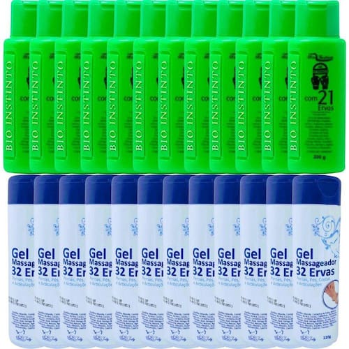 Kit 12 Gel Detonador Com 21 Ervas + 12 Gel 32 Ervas Pés Benefícios e características:- a massagem realizada com o gel detonador 21 ervas bio instinto, auxilia no processo de relaxamento corporal, melhorando a sensação de cansaço e fadiga do corpo. Fórmula nova 0% parabenos e 0% petrolatum, desenvolvida com extratos vegetais há tempos conhecidos para detonar com o mal-estar e revigorar a pele. Modo de uso: - aplicar sobre a pele com auxílio de massagens constantes até completa absorção. Não enxágue. Gel massageador 32 ervas: Benefícios e características:- o gel massageador 32 ervas san jully foi elaborado com uma combinação perfeita de 32 extratos vegetais que confere hidratação, suavidade e refrescância para a pele alem de propiciar alivio à sensação do cansaço físico nas pernas, pés, costas e articulações. Modo de usar:- aplicar sobre a pele com auxílio de massagens constantes até completa absorção. Anvisa: - gel detonador com 21 ervas:Aut. M.S.: 2.05121-7Processo nº: 25351.139717/2018-29 - gel massageador 32 ervas:Aut. M.S.: 2.04579-4Processo nº: 25351.415528/2015-60