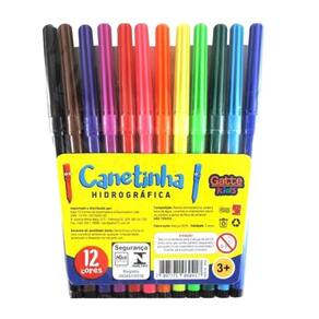 Canetinha hidrográfica Gatte com 12 cores, em embalagem plástica maleável. Ótima qualidade, ponta resistente, tinta a base de água e tampa antiasfixiante. Pode ser utilizada em escolas, para apresentação de trabalhos feitos em cartolinas, papelão, papel cartão, entre outros