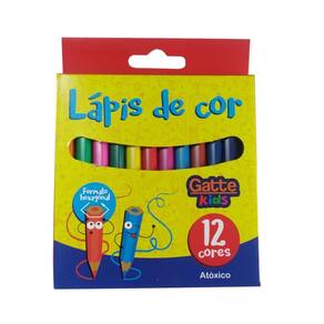 Contém: 12 und - 12 Cores de Lápis de Cor Para Colorir Pequeno / Mini Gatte 12 und - 12 Cores de Canetinhas Hidrográficas