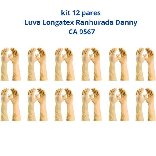 Kit 12 Luva Longatex Ranhurada Danny CA 9567 - Tamanho: G