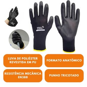 Kit Com 12 Luva de Segurança Tátil Black Smart Volk do Brasil
