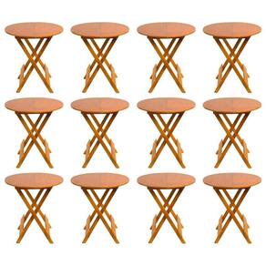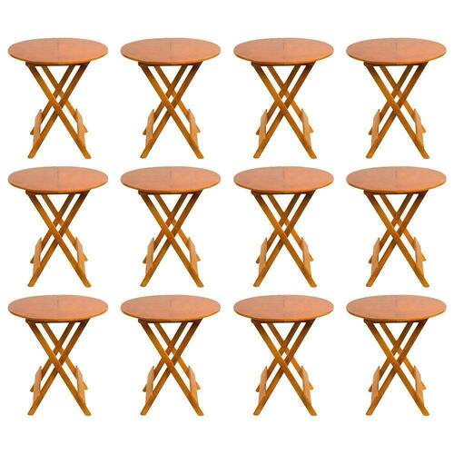 Kit 12 Mesas Redondas Dobráveis Em Madeira Maciça 70x70 Mel Ideal Para Bares E Restaurantes