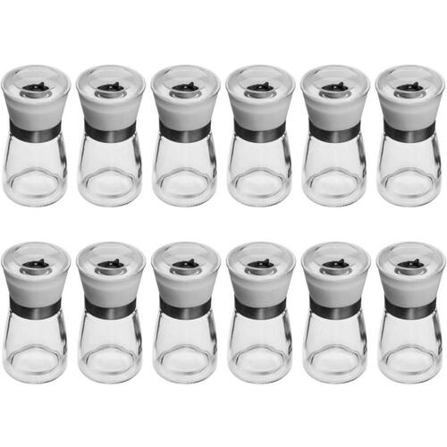 Kit 12 Moedores de Sal e Pimenta 170ml Vidro Manual Triturador Moinho Cerâmica Lyor.