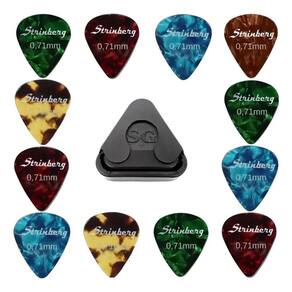 Kit 12 Palhetas Strinberg 0.71mm Para Violão + Porta Palhetas Kit com 12 palhetas para guitarra e violão strinberg 0.71mm medium As palhetas strinberg proporcionam todo o conforto e a pegada que você procura para tirar o melhor som na sua guitarra ou violão Apresentam um corpo mais amplo e uma ponta arredondada o que tornaram este formato de palheta a escolha favorita de músicos de diversos estilos diferentes. As palhetas strinberg são fabricadas em celuloide, que é um dos materiais preferidos para palhetas entre os músicos. Palhetas de celuloide dão a sensação de toque natural ao músico, com uma superfície lisa marcante e um tom musical quente e rico em preenchimento. Dimensões das palhetas: 30 mm altura x 26 mm largura . Espessura das palhetas: 0.71mm / medium Cor: coloridas // material: celuloide Conteúdo da embalagem: 12 palhetas strinberg 0.71mm medium Fornecedor: sonotec / musimax distribuidor oficial dos produtos strinberg no brasil + Porta palhetas preto adesivo para guitarra e violão sg izzo Dimensões do porta palhetas: 40 mm altura x 40 mm largura . Fornecedor: izzo instrumentos musicais Conteúdo da embalagem: 01 porta palhetas adesivo preto Marca: Não Informado
