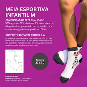 Disponível nos tamanhos P, M e G, nossas meias são adequadas para crianças de todas as idades.