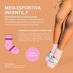Disponível nos tamanhos P, M e G, nossas meias são adequadas para crianças de todas as idades.