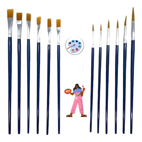 Descrição Kit com 12 Pincéis Para Pintura Artística. Corpo com acabamento de plástico metal com cerdas sinteticas, o pincel é perfeito para cobrir desenhos e grandes áreas com a tinta. Apesar dessa função, essa ponta não consegue absorver uma grande quantidade de tinta e pincela o material moderadamente, o que é excelente para manter o controle da obra. Para conservação das cerdas, não guarde o pincel sem antes lavá-lo.Lave o pincel em agua corrente e seque bem antes de guardar.Servem para tintas a Óleo, Acrílica e Aquarela MEDIDAS:Os Pincéis tem entre 22 e 17 centímetros, com as cerdas. Marca: BEST PEN