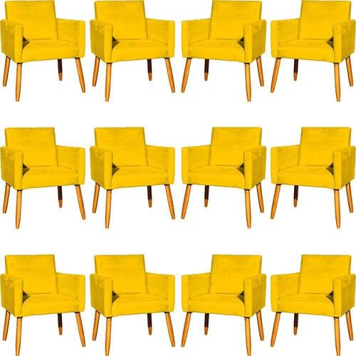 Kit 12 Poltronas Decorativa Para Sala Nina Suede Cores Pé Palito 30cm Castanho - Suede