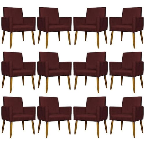 KIT 12 POLTRONAS MARI SUEDE CORES PÉ PALITO 30 CM CASTANHO