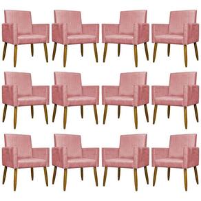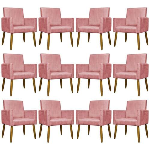 Kit 12 Poltronas Decorativas Mari Pé Palito Castanho - Rosê Suede - Marrom