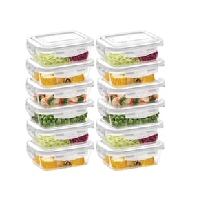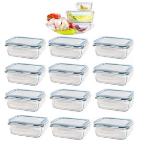 Design Retangular Inteligente: Seu formato otimiza o espaço na geladeira e na despensa, facilitando a organização e visualização dos conteúdos. kit 12 Potes de Vidro Hermético com Trava e Vedação 840 ML.