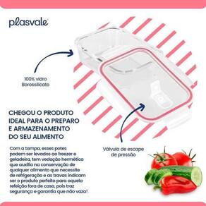 Praticidade no dia a dia combinado com a versatilidade que o vidro pode lhe oferecer Chegou o produto ideal para o preparo e armazenamento do seu alimento. Com a tampa, esses potes podem ser levados ao freezer e geladeira, tem vedação hermética que auxilia na conservação de qualquer alimento que necessite de refrigeração e as travas indicam ser o produto perfeito para aquela refeição fora de casa, pois traz segurança e que não vaza. O corpo, de vidro borossilicato, desde que sem a tampa, possibilita o preparo de alimentos no forno ou microondas, pois é resistente à altas temperaturas. Não perca a oportunidade e adquira o Pote de vidro hermético da Plasvale agora mesmo Dimensões: 18,0x 13,7 x 6,0cm Comprimento x Largura x Altura Peso: 0,658 Kg Capacidade: 640 ml Corpo resistente à temperaturas entre -20 à 400ºC Recomendações de Uso: - Adequado para Microondas Sem a Tampa . - Permitido para Máquina de Lavar Sem a Tampa - Apropriado para Forno Sem a Tampa . - Permitido para Freezer e Geladeira. Dicas Plasvale: Lave antes do primeiro uso e não utilize produtos abrasivos. Lavar sempre com esponja macia e detergente neutro. Marca: Não Informado Ean: 7894693981592